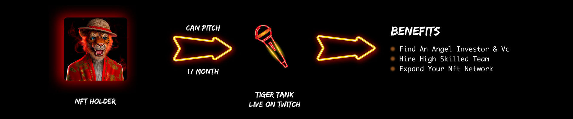The Tigers Tank panel will include renowned Angel Investors & VC, NFT projects founders and 500+ community members. If we Tigers hear about a great decentralised idea with a bulletproof business plan, we will be ready to allocate a budget from the community wallet + our own resources to fund it.